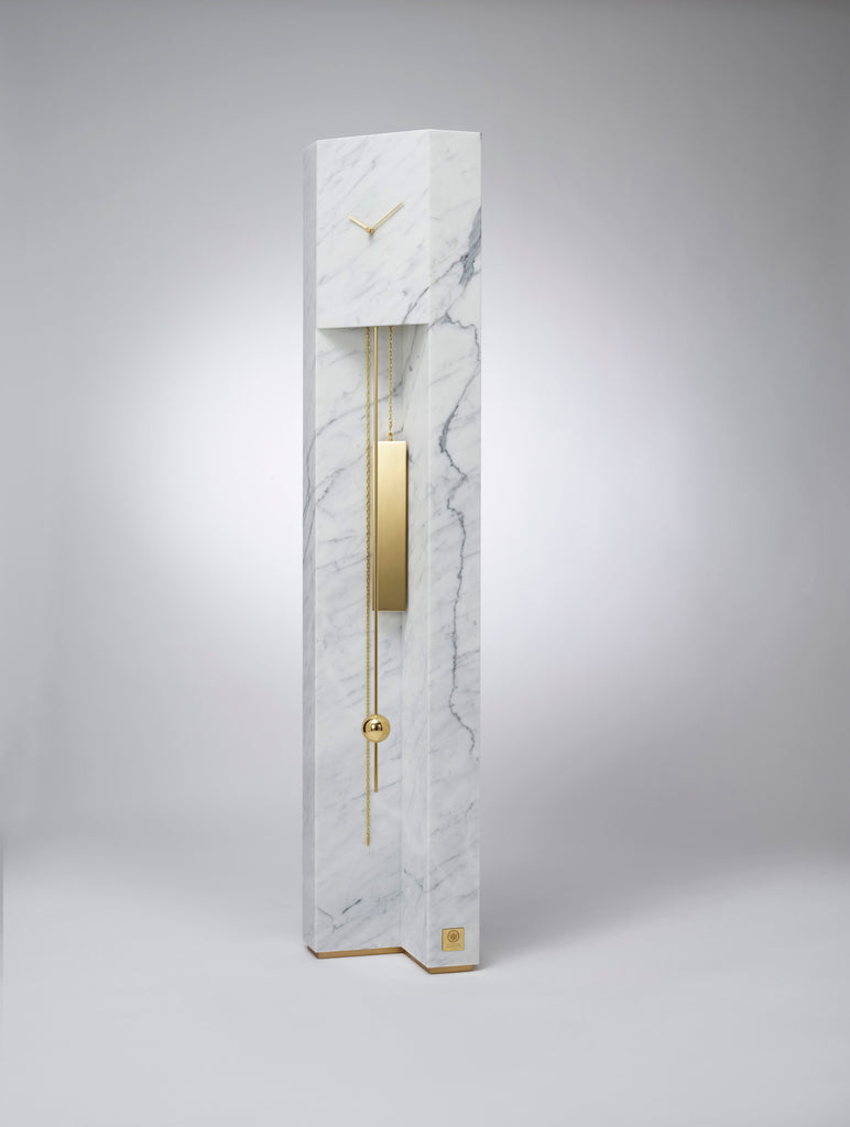 Time Machine is an exclusive statuesque grandfather clock designed to celebrate the 10th anniversary of Lee Broom. Juxtaposed to the traditionalism usually associated with such time pieces, Time Machine’s faceted angles and straight lines create a modernist silhouette which echoes of Brutalism.