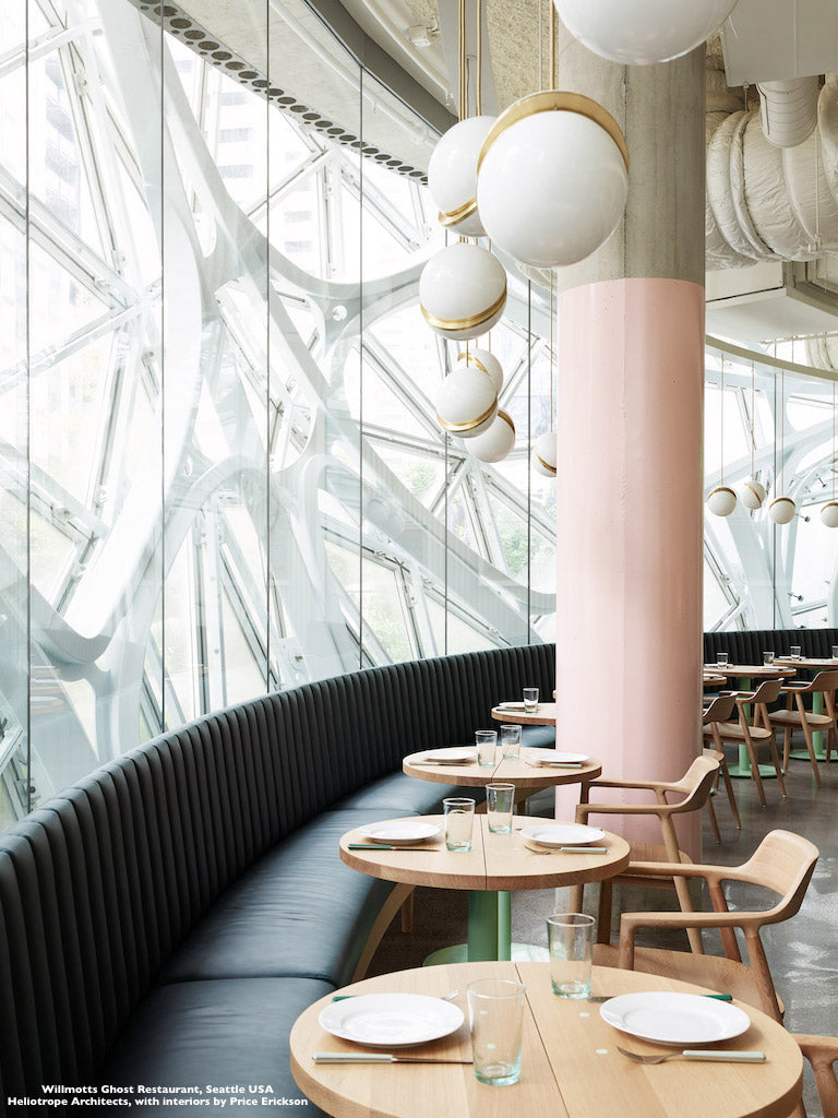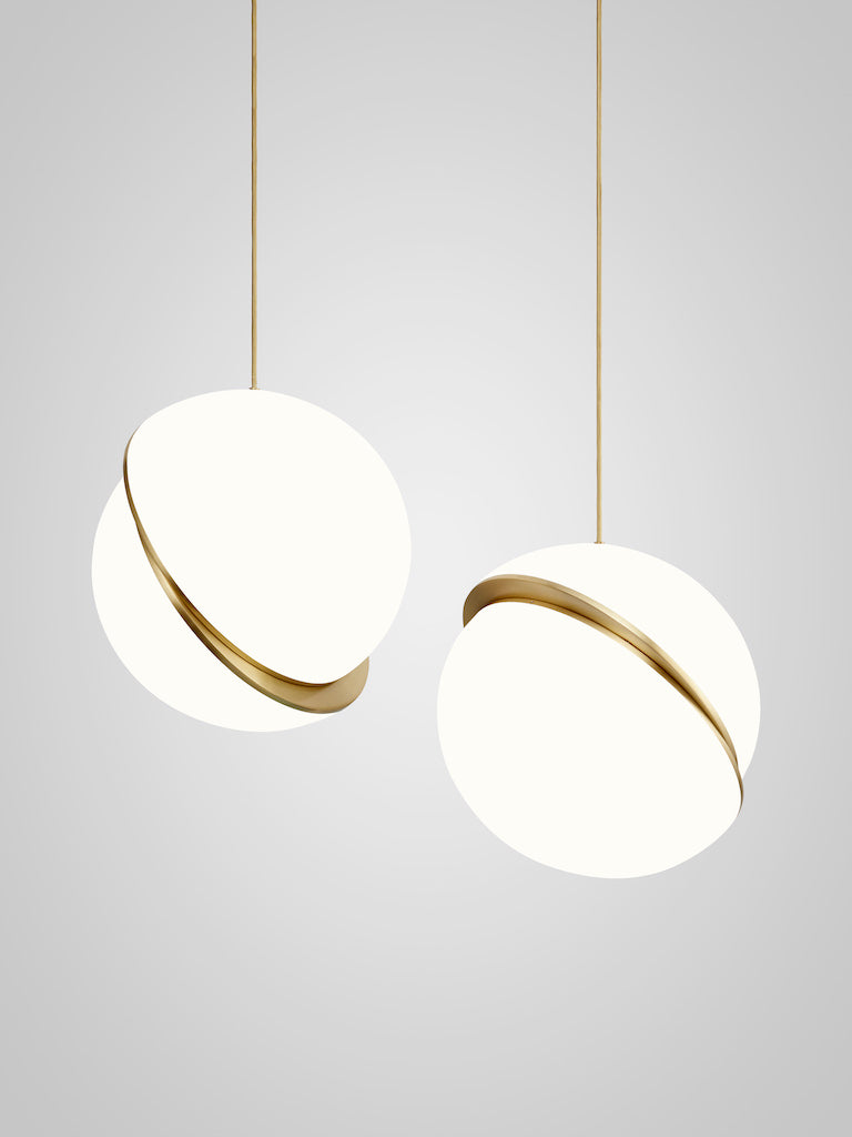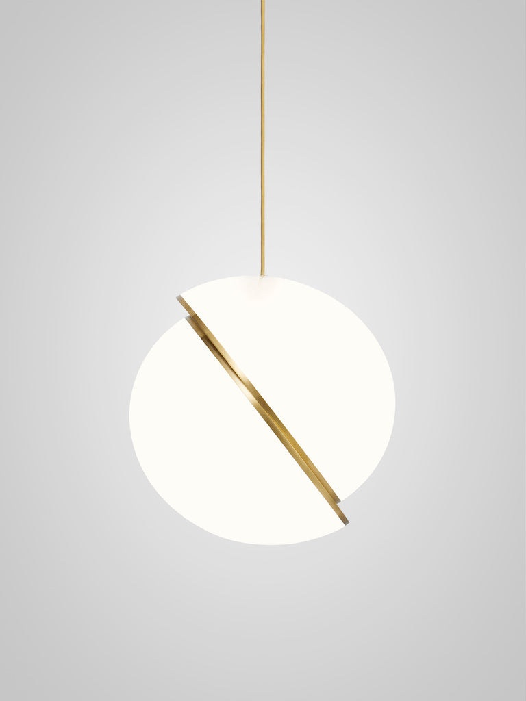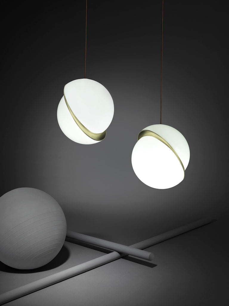 An illuminated sphere sliced in half to reveal a crescent-shaped brushed brass fascia, Crescent Light seamlessly combines the solid and the opaque.