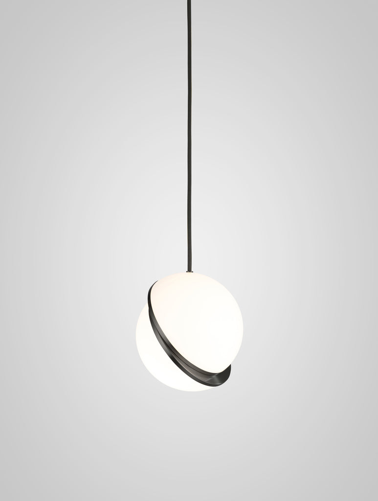 A miniature version of the popular Crescent Light, this illuminated sphere is sliced asymmetrically in half to reveal a crescent-shaped brushed or blackened brass fascia. Mini Crescent seamlessly combines the solid and the opaque.